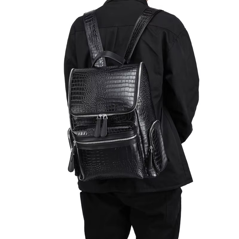 Alligator Leather Men's Backpack Business Laptop Bag Men Large Capacity Travel Backpacks Schoolbag Rucksack Student School Bag
