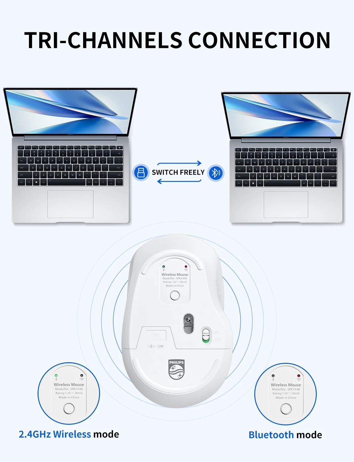 Product Specifications – Philips SPK7448 Wireless & Bluetooth Mouse